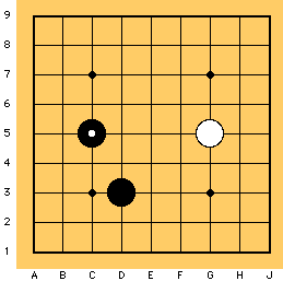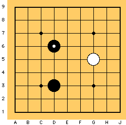 Questo si chiama salto di due spazi.Anche se è più ampio e dà più territorio, è pù probabile che le due pietre siano separate dall'avversario perch&ecaute; c'è più spazio tra di loro.