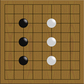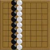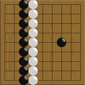 Se circondi un'area troppo grande, l'avversario potrà "invadere".Qui nero salta nell'area bianca. Poiché è un'area troppo vasta, nero può costruirci un gruppo vivo se gioca sufficientemente bene.